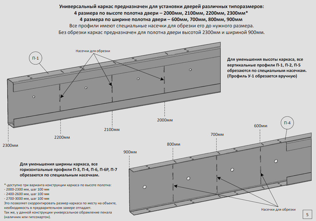 * Без обрезки каркас предназначен для полотна двери высотой 2300мм и шириной 900мм
