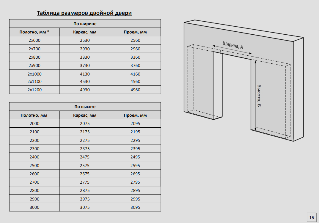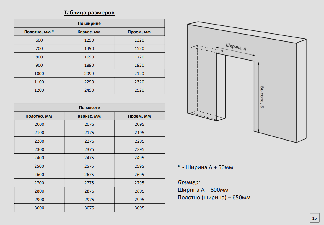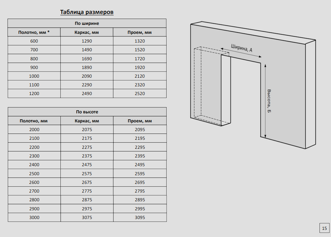 Полотно, мм Каркас, мм Проем, мм