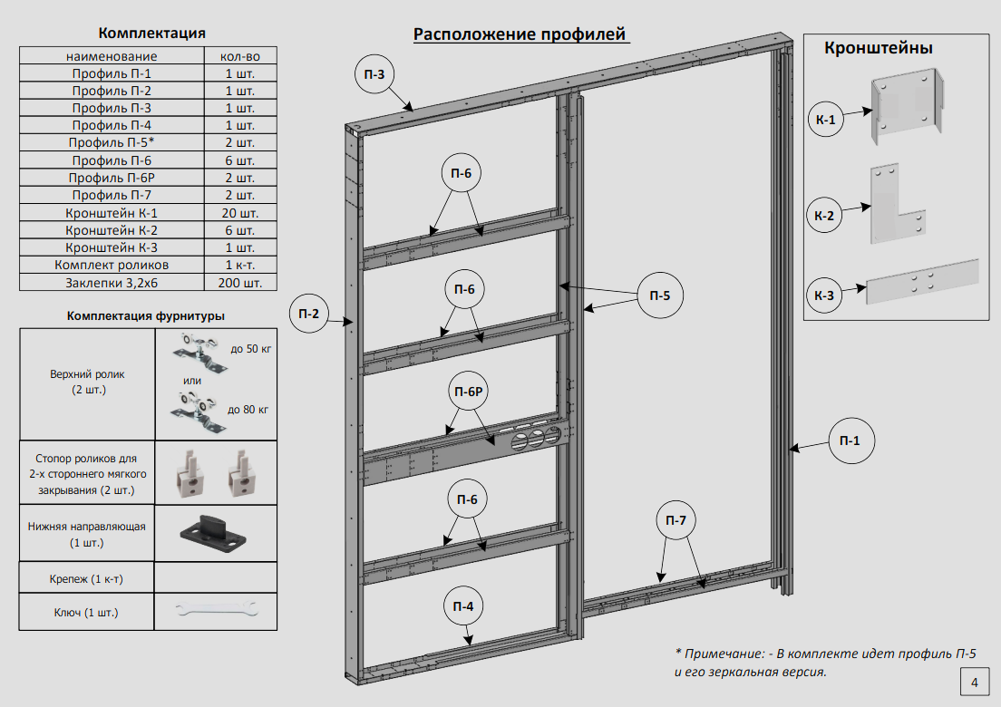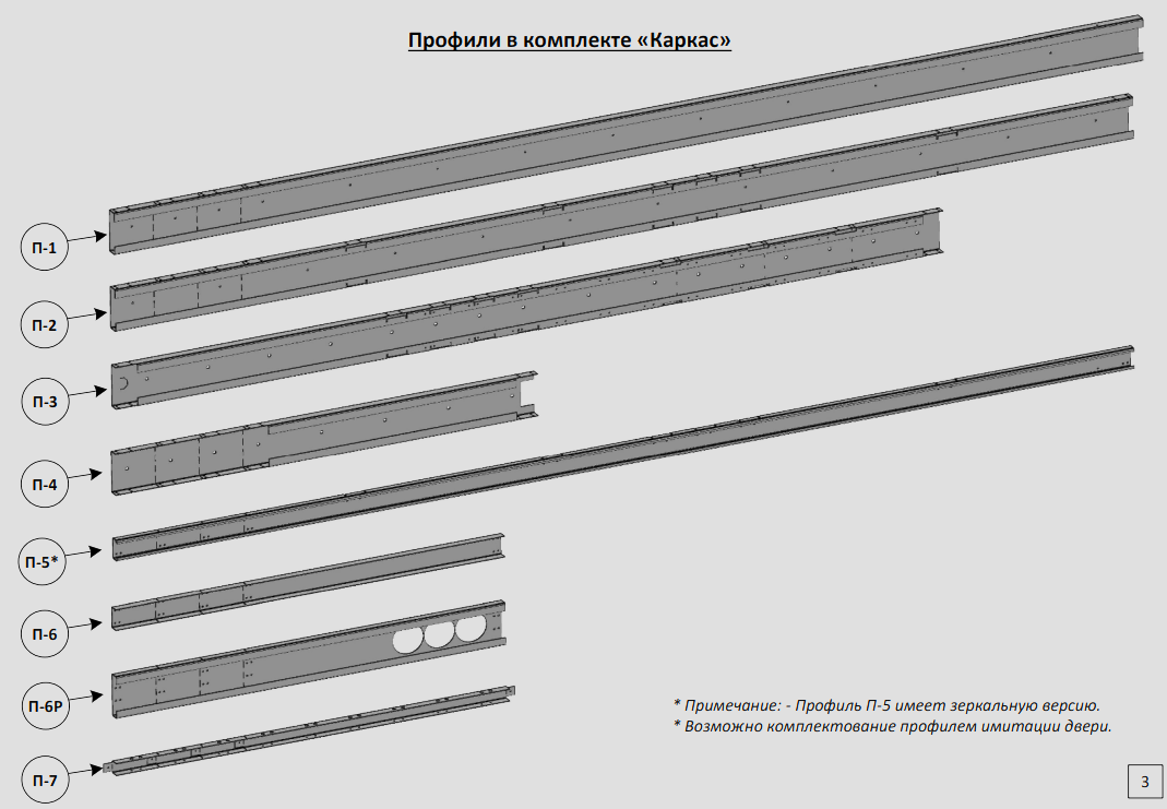 * В комплекте идет профиль П-5 и его зеркальная версия