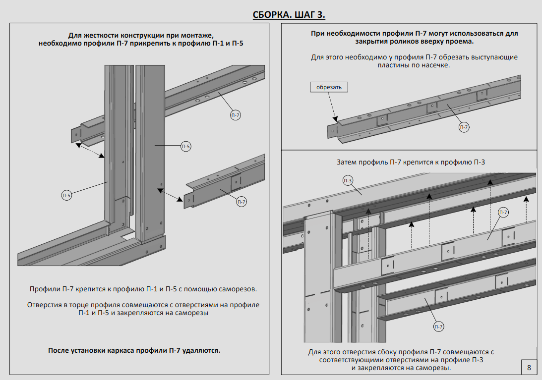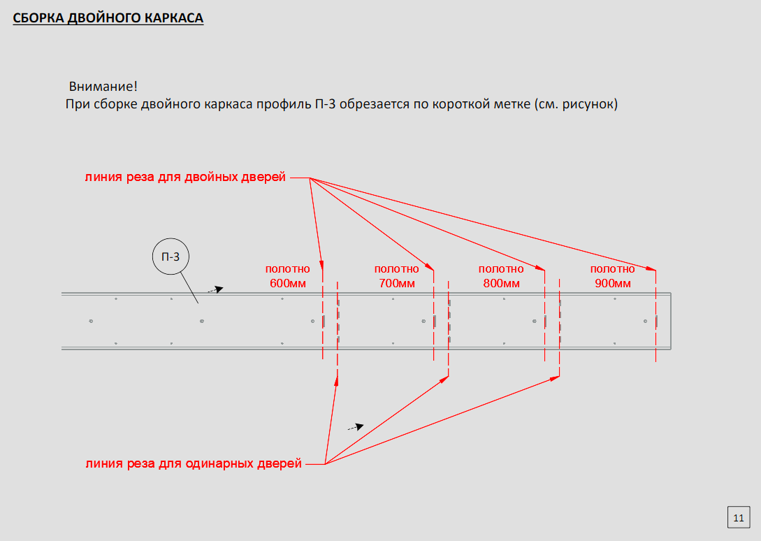 Для уменьшения ширины: горизонтальные профили П-3, П-4, П-6, П-6Р, П-7 обрезаются по насечкам