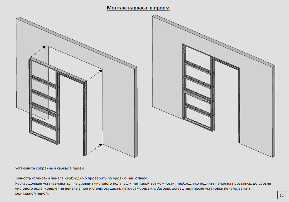 2. Каркас должен устанавливаться на уровень чернового/предчернового пола. При необходимости можно поднять пенал на проставках до уровня чистового пола.